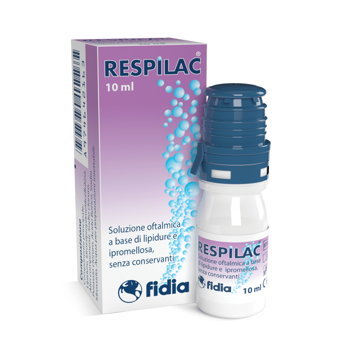Respilac è un sostituto lacrimale in forma di soluzione oftalmica sterile, isotonica, senza conservanti* a base di Lipidure® 2,0% e Ipromellosa 0,1%, utile per l’integrazione della secrezione lacrimale e il ripristino delle condizioni fisiologiche del film lacrimale. RESPILAC protegge e lubrifica la superficie dell’occhio, fornendo sollievo dallo stress ambientale e meccanico, in particolare nei portatori di lenti a contatto.