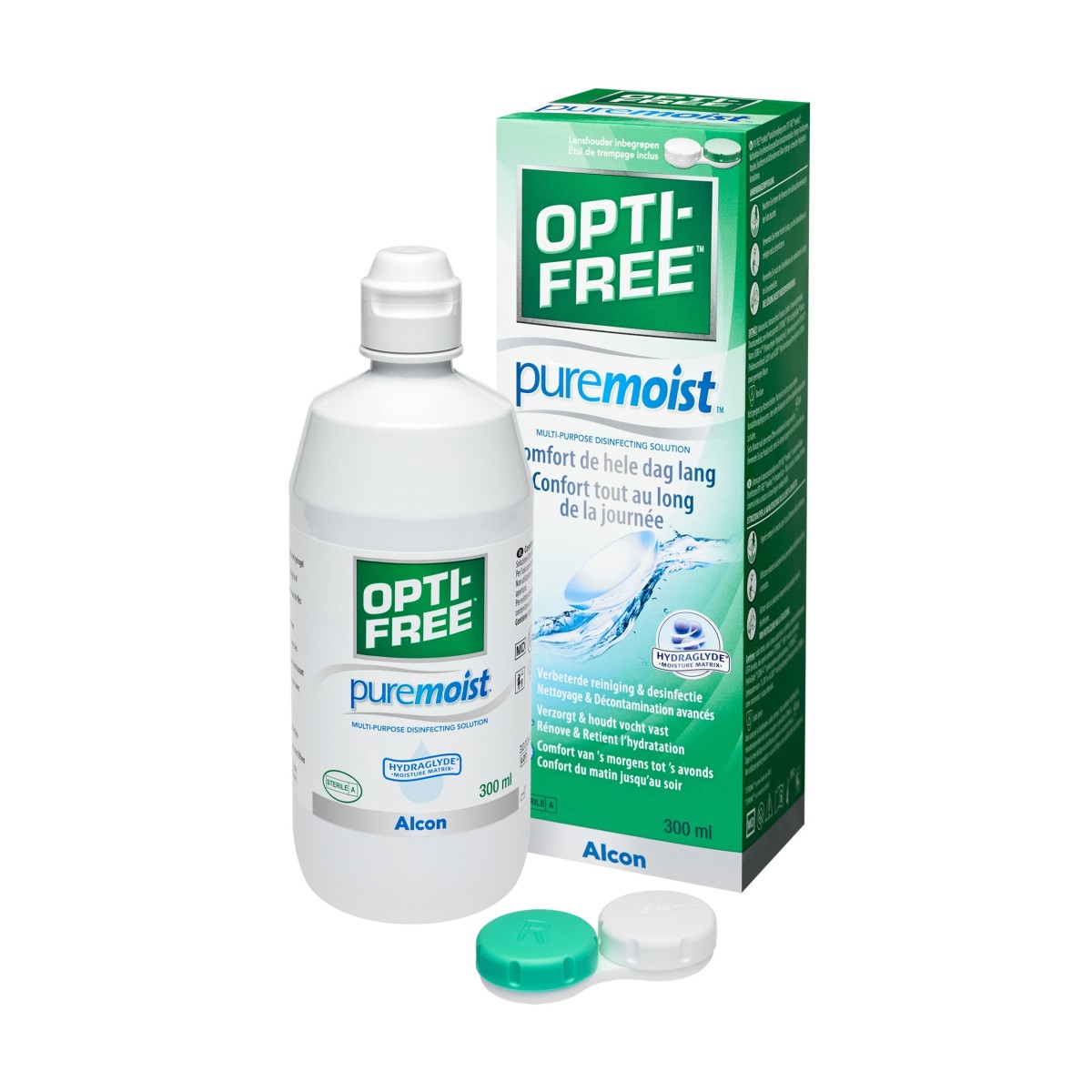 La soluzione multiuso OPTI-FREE® PureMoist® contiene la molecola HydraGlyde® che offre un'elevata idratazione della superficie delle lenti a contatto e permette di ridurre la sensazione di secchezza oculare a fine giornata. Inoltre crea una barriera che aiuta a ridurre la formazione di depositi e sporco sulla lente a contatto per prolungare le ore di comfort.