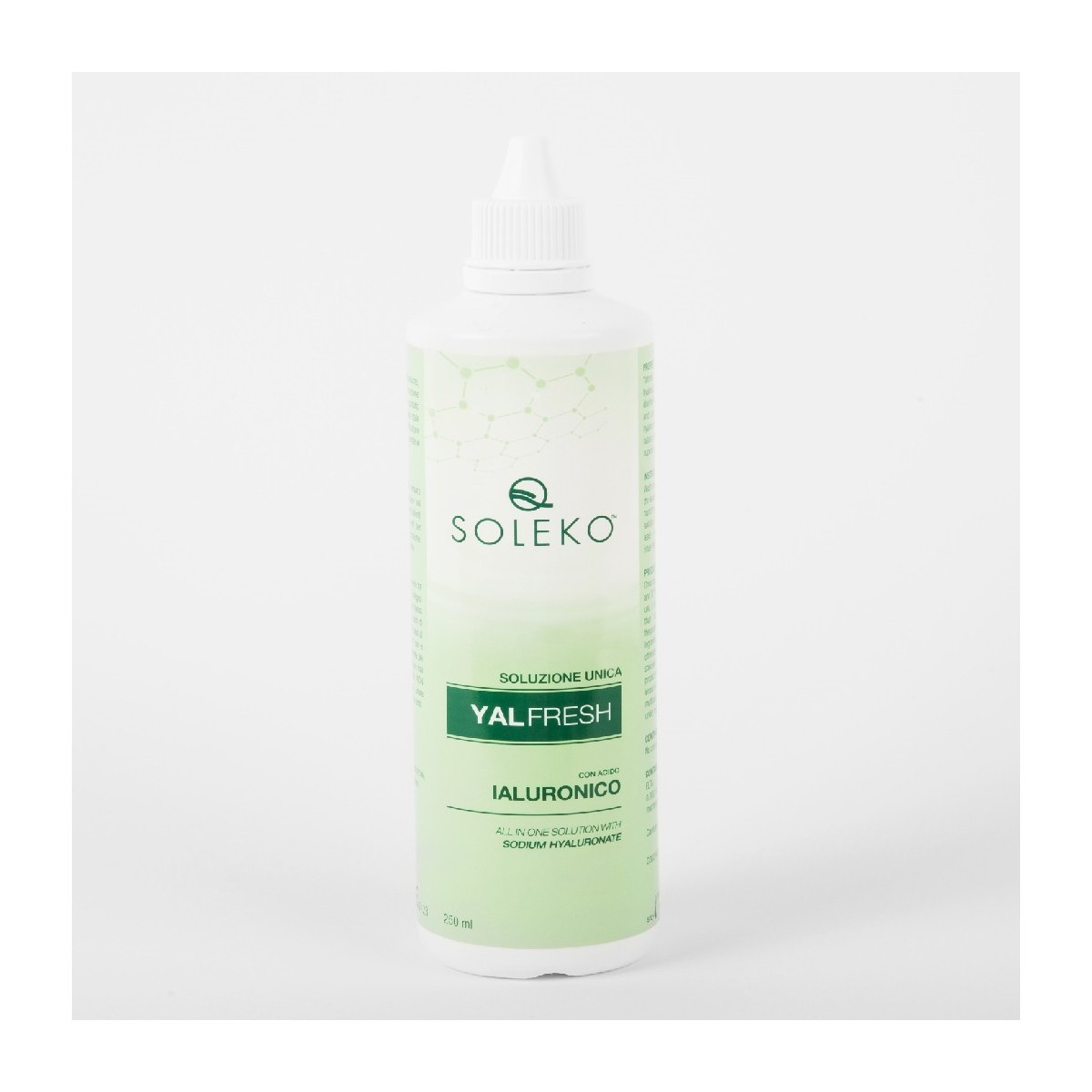 La soluzione unica YalFresh 100 ml è indicata per la disinfezione, conservazione, pulizia, idratazione, risciacquo e rimozione dei depositi proteici per tutti i tipi di lenti a contatto morbide colorate/cosmetiche. Il polimero ialuronato di sodio, dalle elevate proprietà viscoelastiche, migliora la lubrificazione e la biotollerabilità delle lenti perché le mantiene costantemente idratate.